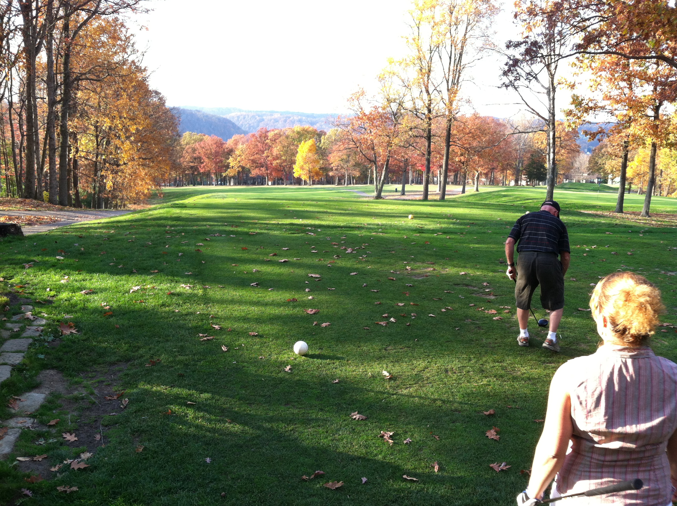There is a commercial on TV that features a popular professional golf player chastising a casual golfer who has just kicked his ball away from a tree. This cracked me up the very first time I watched. That commercial goes through my head every time I go out on the course. There are several beautiful golf courses here in Morgantown. I’ve had the pain and pleasure of playing three of them. Pain because I am a beginner and they are difficult for me to play and pleasure because each is lovely and I enjoy playing golf. This is a surprising phrase as I “never” thought I would actually go out and play the game. Rule #1: Never say “never”.